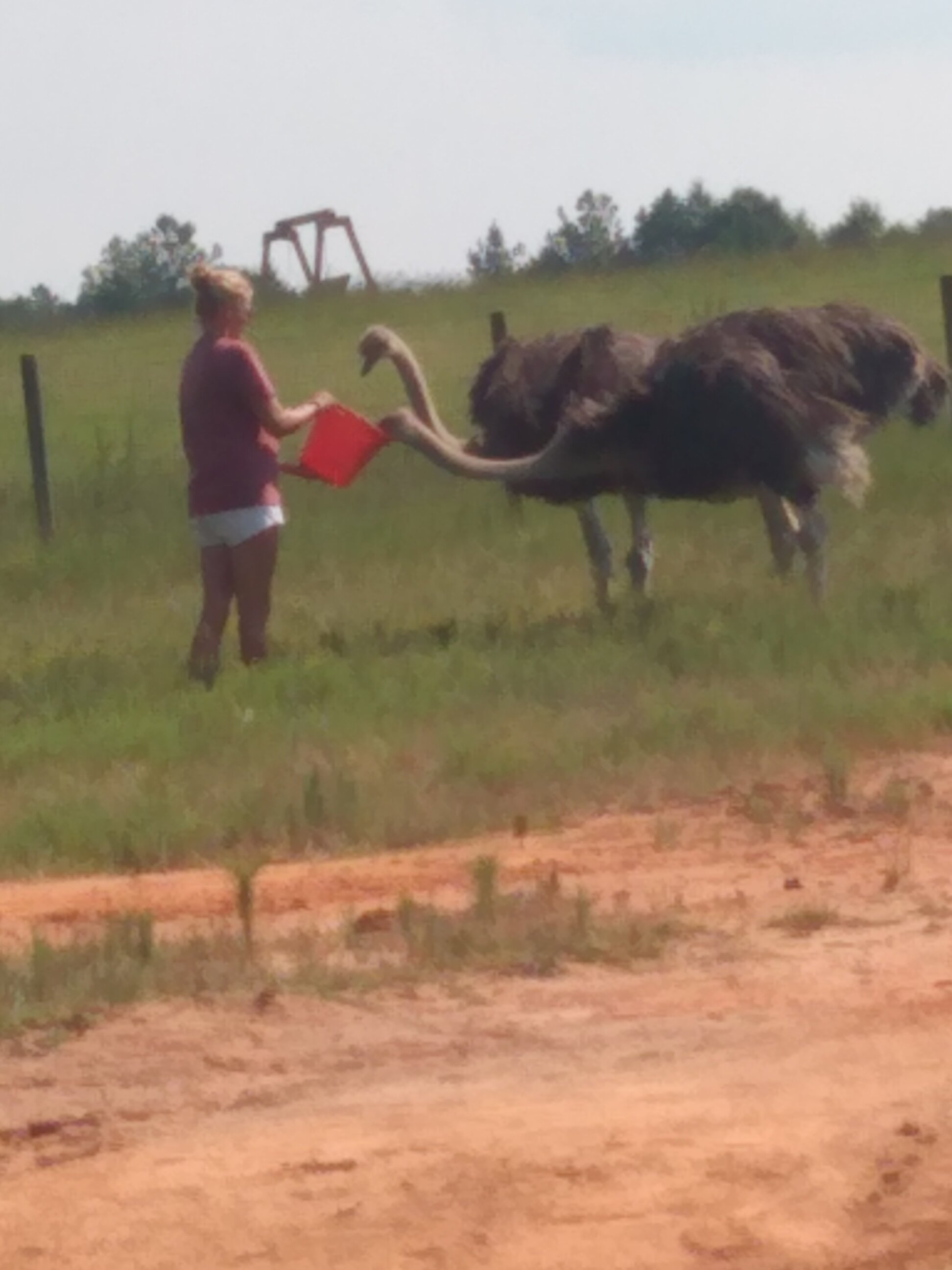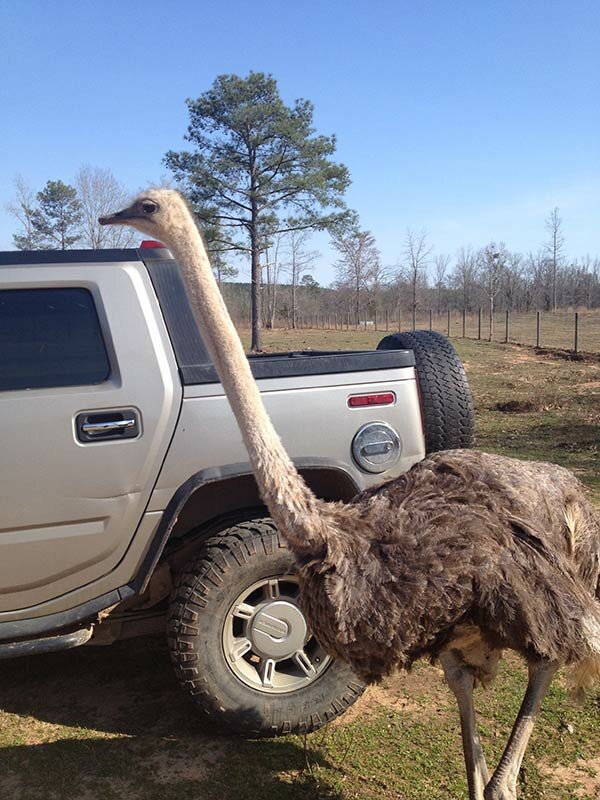 The African flightless bird, the ostrich, has long been the victim of scuttlebutt. First, take the tale of hiding its he'd in the sand. It does not, but periodically uses its beak to rearrange eggs which are nested in the ground. Second, it is claimed that the female never sits on hatching eggs but rather stands guard over the eggs, watching ceaselessly without blinking or distraction until they hatch. Indeed, this myth probably led to the Orthodox Christian practice of hanging oil lamps within lavishly decorated ostrich eggs in analogy to the religious injunction to "Pray constantly, without cease". Now, for a few real facts: Ostriches are the largest birds. The biggest eggs on earth are ostrich eggs. Unlike all other birds, ostriches excrete urine and feces separately (not mixed together), just as in man. Ostrich skin makes the toughest leather. Ostriches are related to Emu, Kiwis and Rheas. Ostriches can run up to peak speeds of 45 miles per hour, making them the fastest 2-legged animals. The male ostrich is usually colored black, whilst the female is tan to grey. The lower legs are covered in red (males) or black (female) scales. Ostriches can only kick forward, but a kick could kill or maim. They perform a highly stylized, elaborate mating dance in summer before breeding. Eggs are incubated by (tan/brown-colored) females at daytime and (black-colored) males at night. These birds have no sweat glands and cannot sweat. They are amazingly well-adapted to hot, dry desert conditions, often panting to cool themselves through water evaporation from the lungs. Ostriches can live up to 65 years making them the longest-living birds.