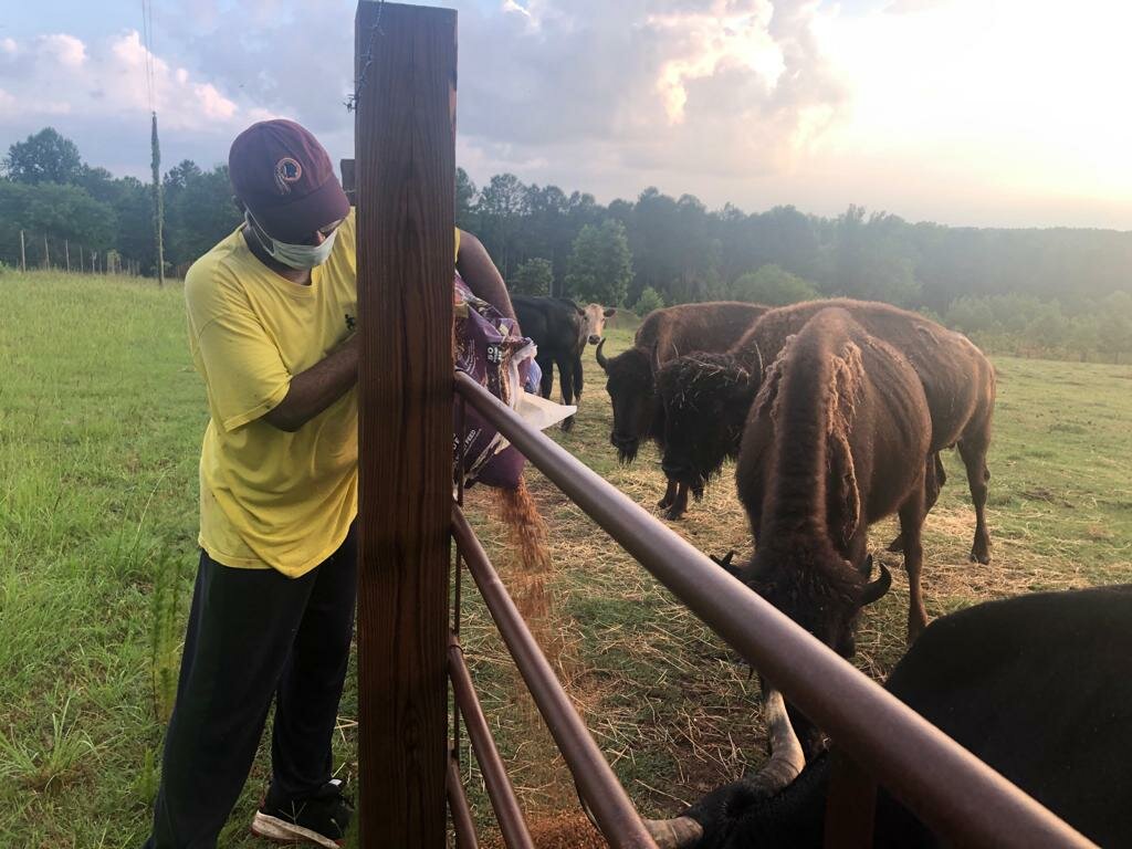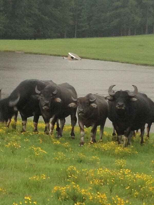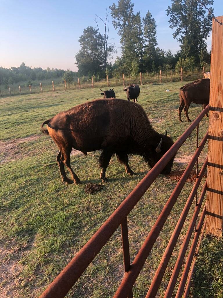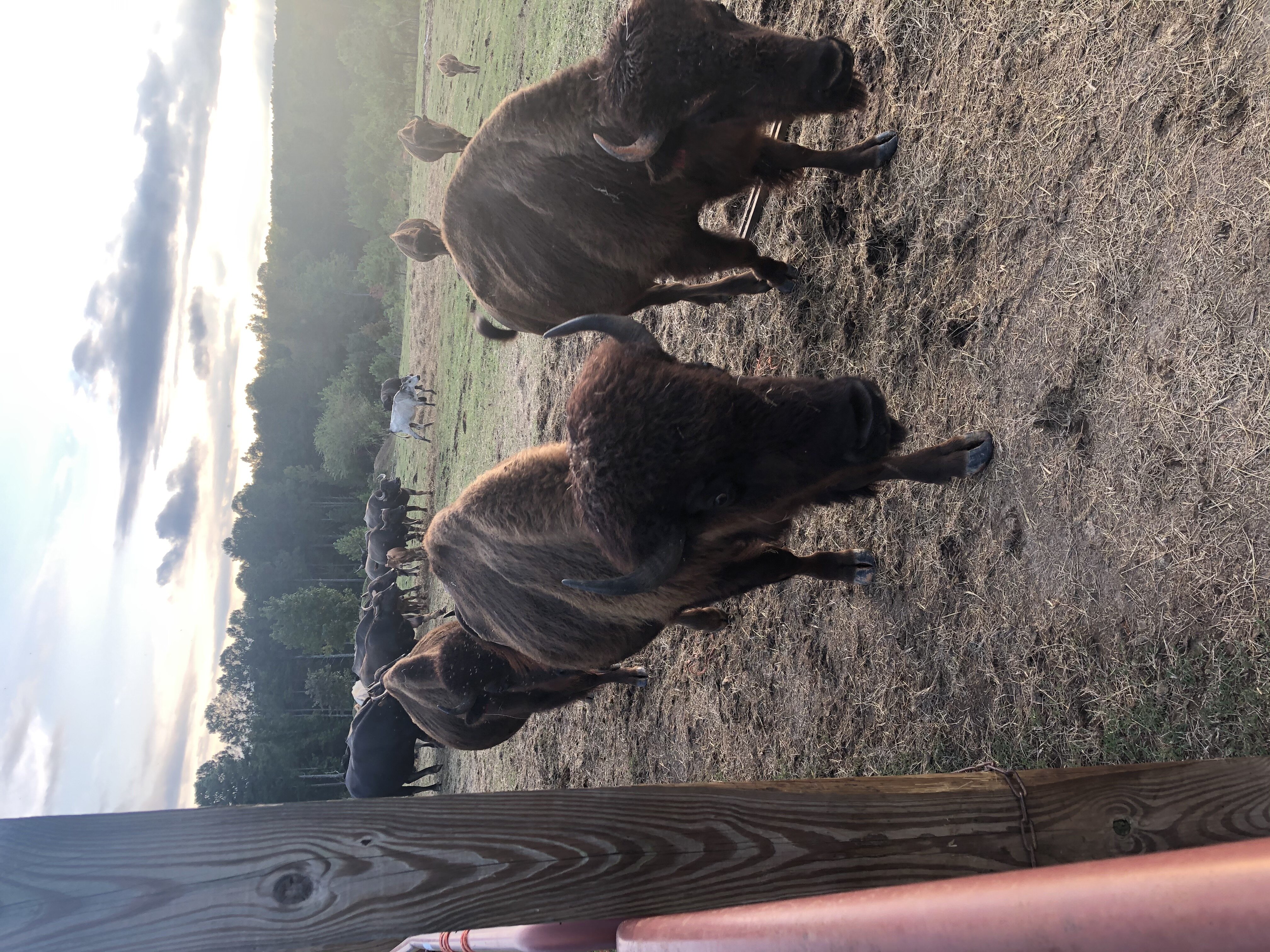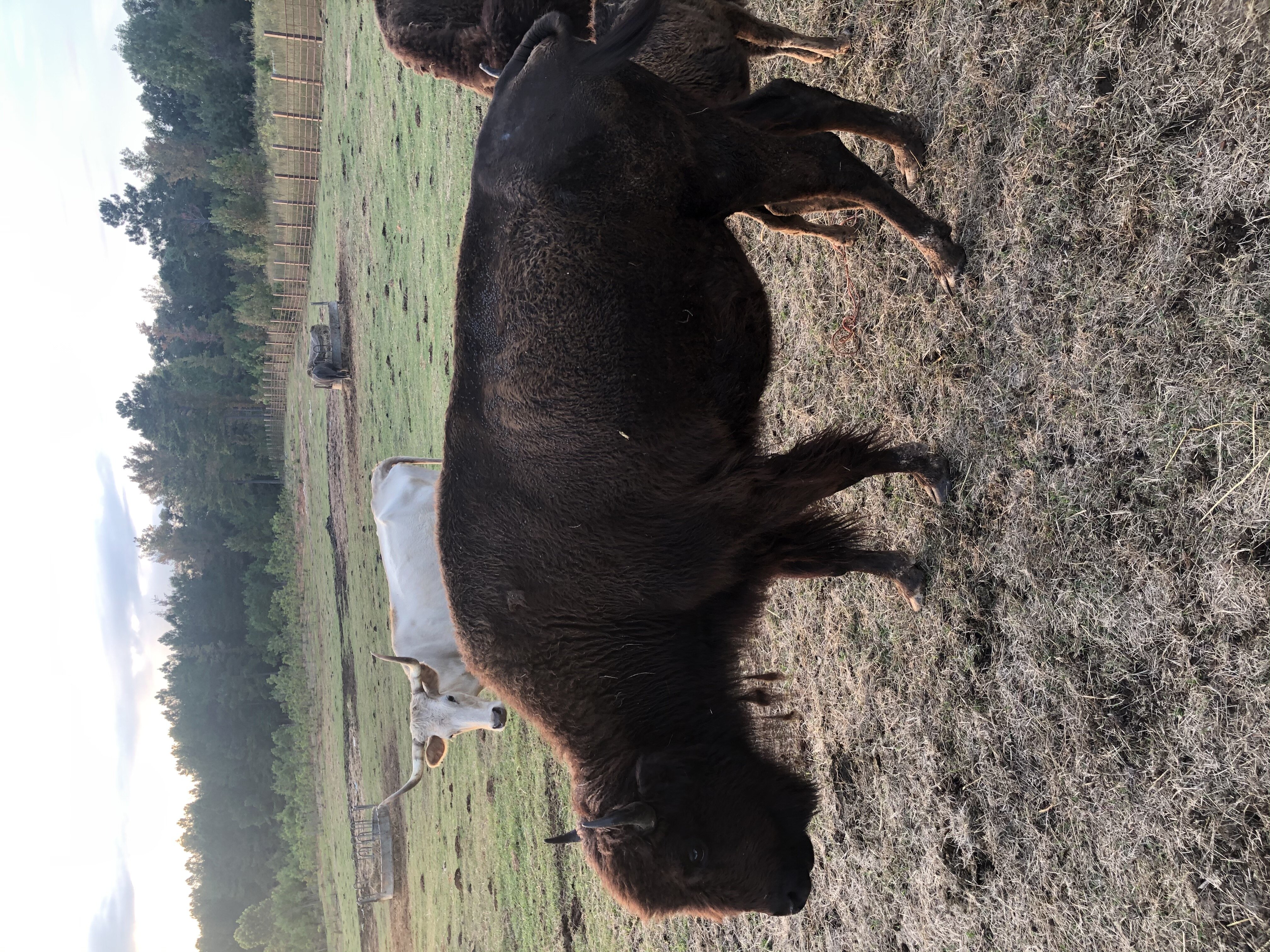 Bison are wondrous animals, being the largest land mammals found in America and certainly one of the strongest. It is closely related to Yak and Zebu cattle. Being nomadic by nature, they are prone to wonder off fenced pastures seeking grasslands, brush and adventure. Bison have a strange habit of rubbing their trunks vigorously on the soil, a practice called wallowing, which creates "snow man" shapes on the earth, and may sometimes lead to skin infection with earth-borne anthrax. Though typically placid, it can go from docile to furious "battering ram" in 30 seconds or less, creating mayhem with its hard skull and short horns. The adult bison can weigh up to 2600 pounds, roughly the tonnage of a mid-sized truck, standing about 6 feet tall and 10 feet in length. The American buffalo is a herd grazer which was once found across these United States and Canada, but its now more commonly encountered stalking the plains, living a nomadic life, traveling in typically single-gender herds until late in summer, when raging hormones force some commingling and procreation. Amazingly, bison can also crossbreed with cattle, producing fertile offspring which bare known as beefalo! There are about 200,000 bison or more in America, a specie that was once hunted to near-extinction at the turn of the 19th century. Man, as well as the grey wolf and bears, are its major predators in nature. November 1 is National Bison Day: support bison, eat steak!