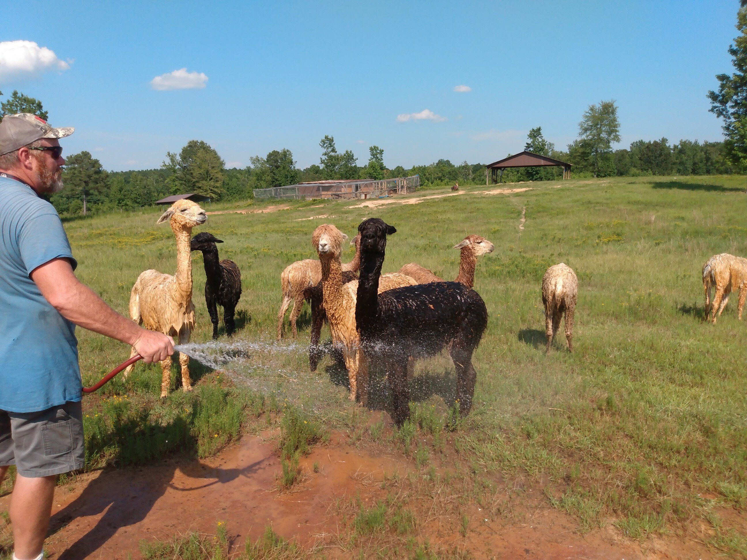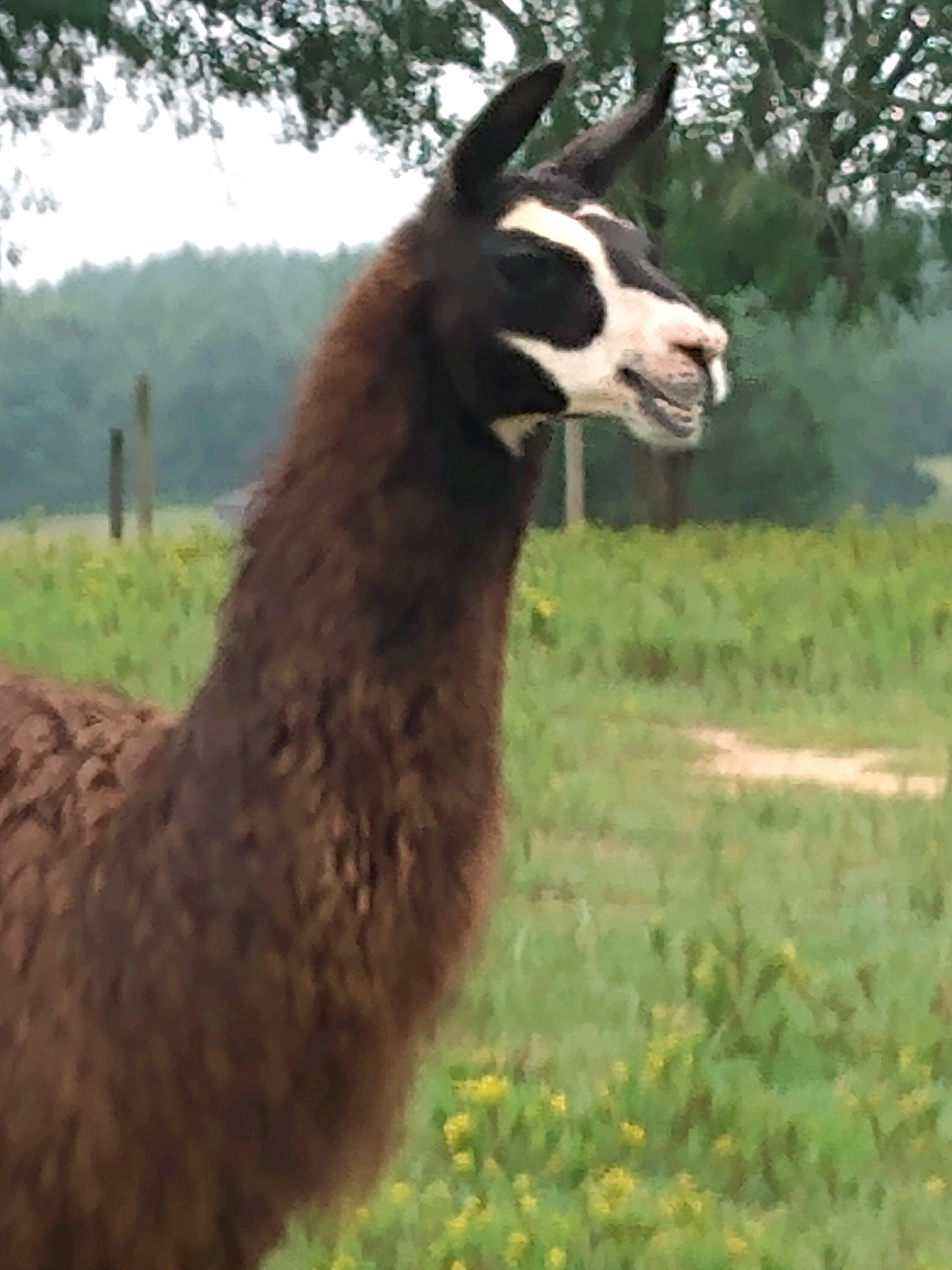 This domesticated South American camelid is related to camels (of course), llamas (a larger cousin, also from South America) and wild guanacos as well as wild vicunas, all from South America. They can live up to 27 years. Typically shy, docile creatures, they sometimes manifest distasteful, if not overtly aggressive behavior, such as spitting on adversaries. In ordinary farm life, they shrill (in distress), orgle (in courtship), and kick (for attention), which truly is more of a "tap" than an aggressive boot. Though they have teeth, alpacas do not bite and have no hooves. These gentle animals are valuable for their lightweight lustrous fleece, low-fat meat, and smarts, often shown across the country for its inquisitive, beguiling intelligence.